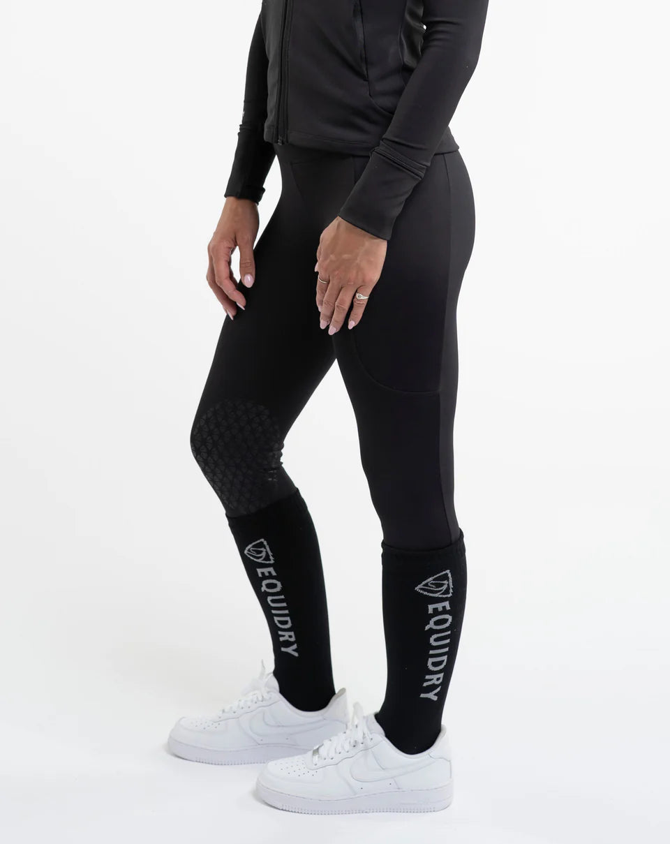 The knee length EQUIDRY Waterproof Riding Socks are a must-have for wet and cold outdoor wear. They are crafted using a three-layer bonded construction that combines a 100% waterproof, breathable membrane sandwiched between a durable, stretch nylon blend outer and a stretch, cotton inner. The 4-way stretch along with augmented toe and heel offers a great fit, comfort and wearability.
